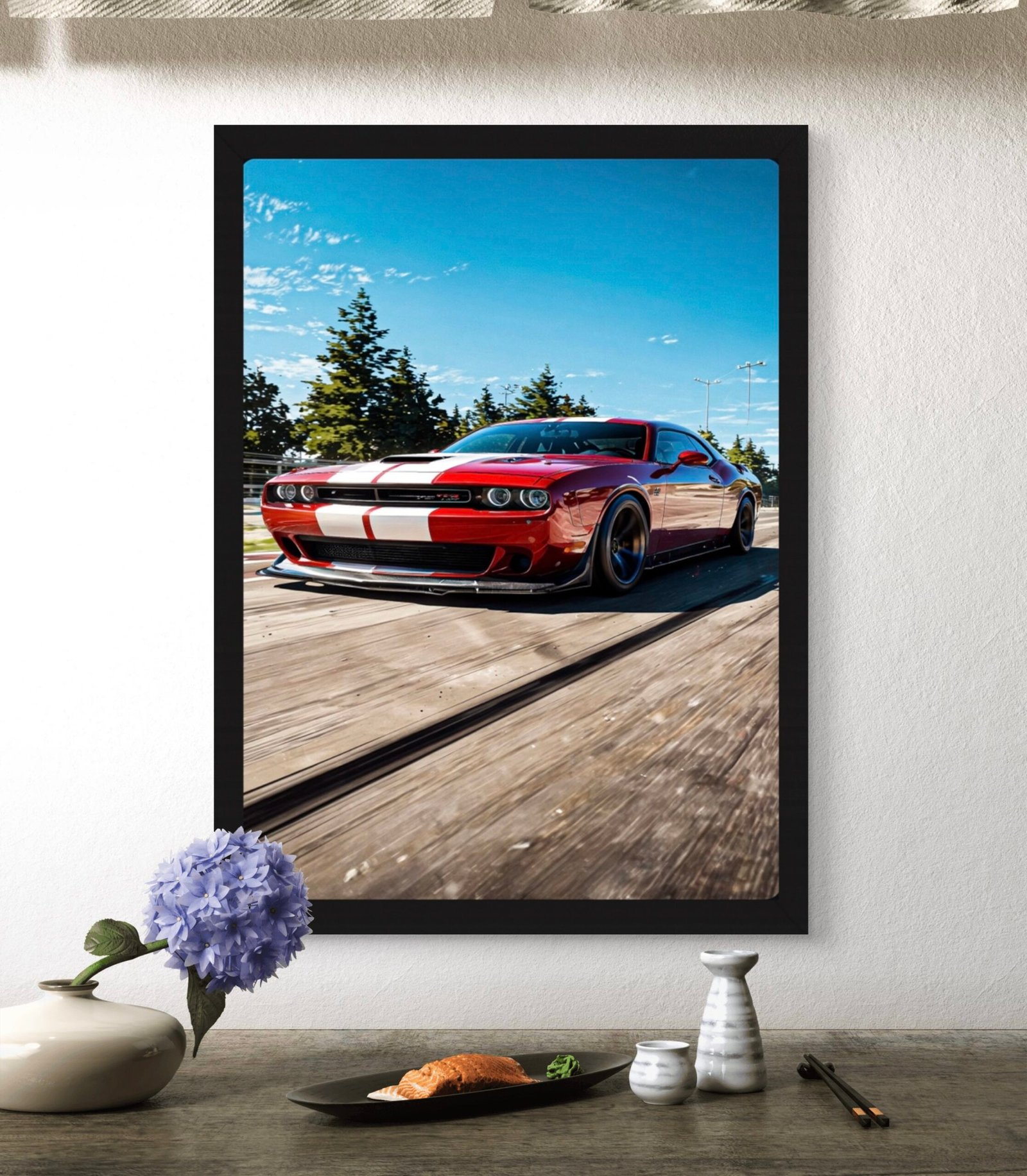 Bring raw American muscle to your space with this 2-piece Dodge Challenger bundle by The Frame Street. Each frame captures iconic angles — the aggressive front profile and the commanding rear stance — printed in crisp HD/4K detail and mounted in premium A3 frames. Perfect for car enthusiasts, garage setups, home offices, or anyone who loves bold, high-impact automotive décor.