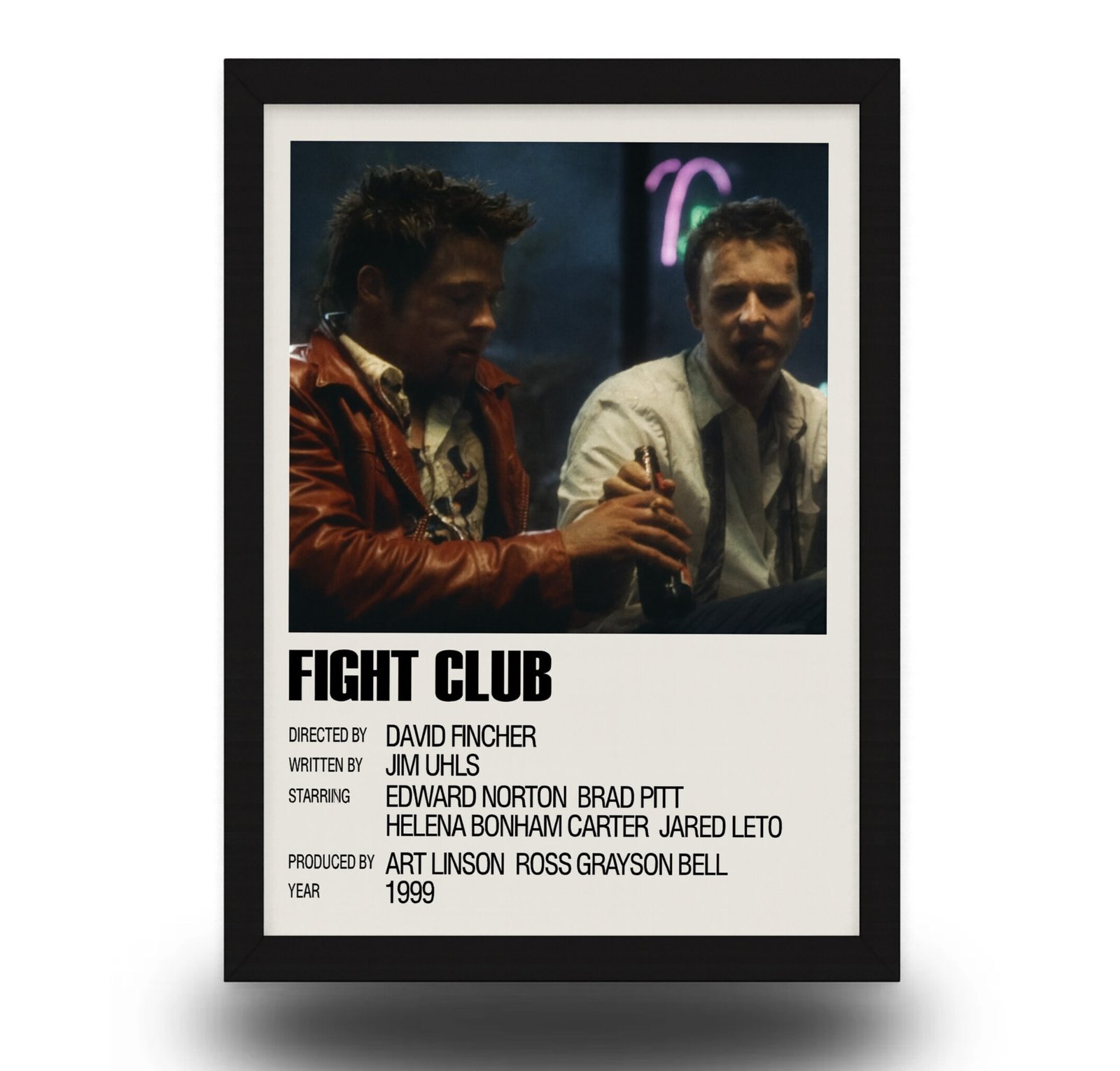 Celebrate David Fincher’s legendary 1999 classic with this cinematic Fight Club poster. Showcasing Brad Pitt and Edward Norton in an unforgettable bar scene, this premium framed print is perfect for collectors and movie fans. Sharp detailing, rich colors, and a luxury finish make it a centerpiece for any entertainment space.