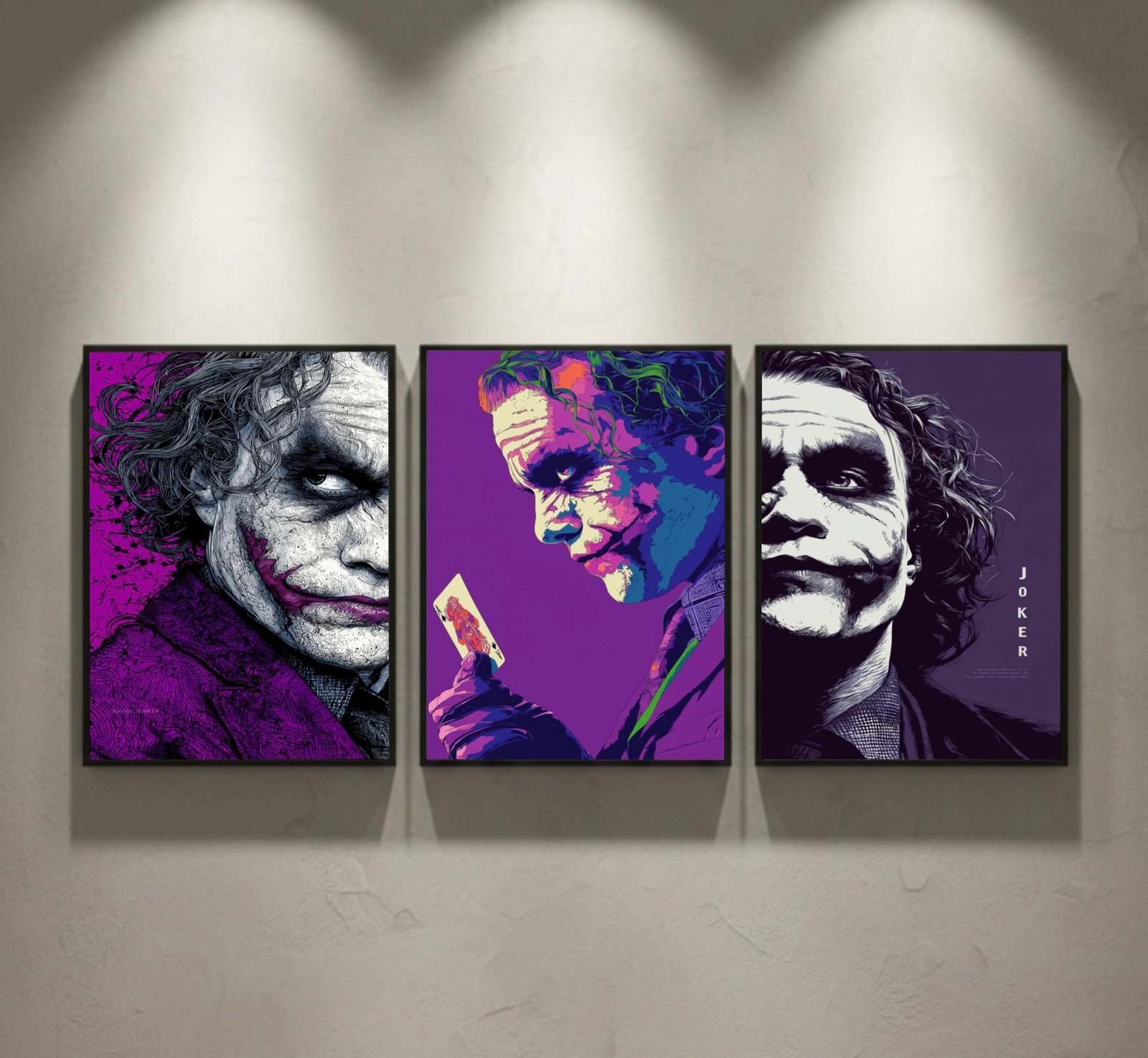 Unleash the raw madness and iconic energy of the Joker with this 3-piece premium bundle by The Frame Street. Each frame captures a different version of Gotham’s most unpredictable villain, printed in HD/4K clarity and mounted in sleek A3 frames. Designed to stand out in any room, this set blends dark aesthetics, cinematic drama, and bold character art — perfect for fans, collectors, and unique interior décor.