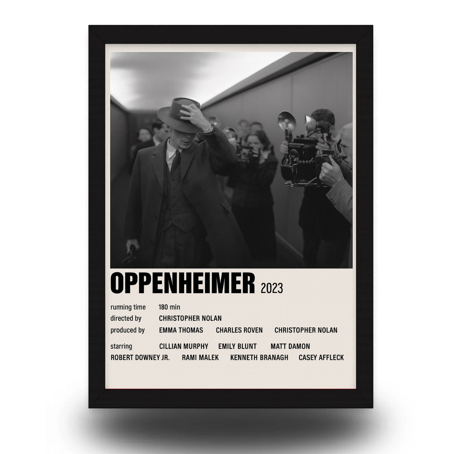Black & white framed wall art of Christopher Nolan’s Oppenheimer (2023) featuring Cillian Murphy as J. Robert Oppenheimer. A cinematic décor piece for history and movie fans.