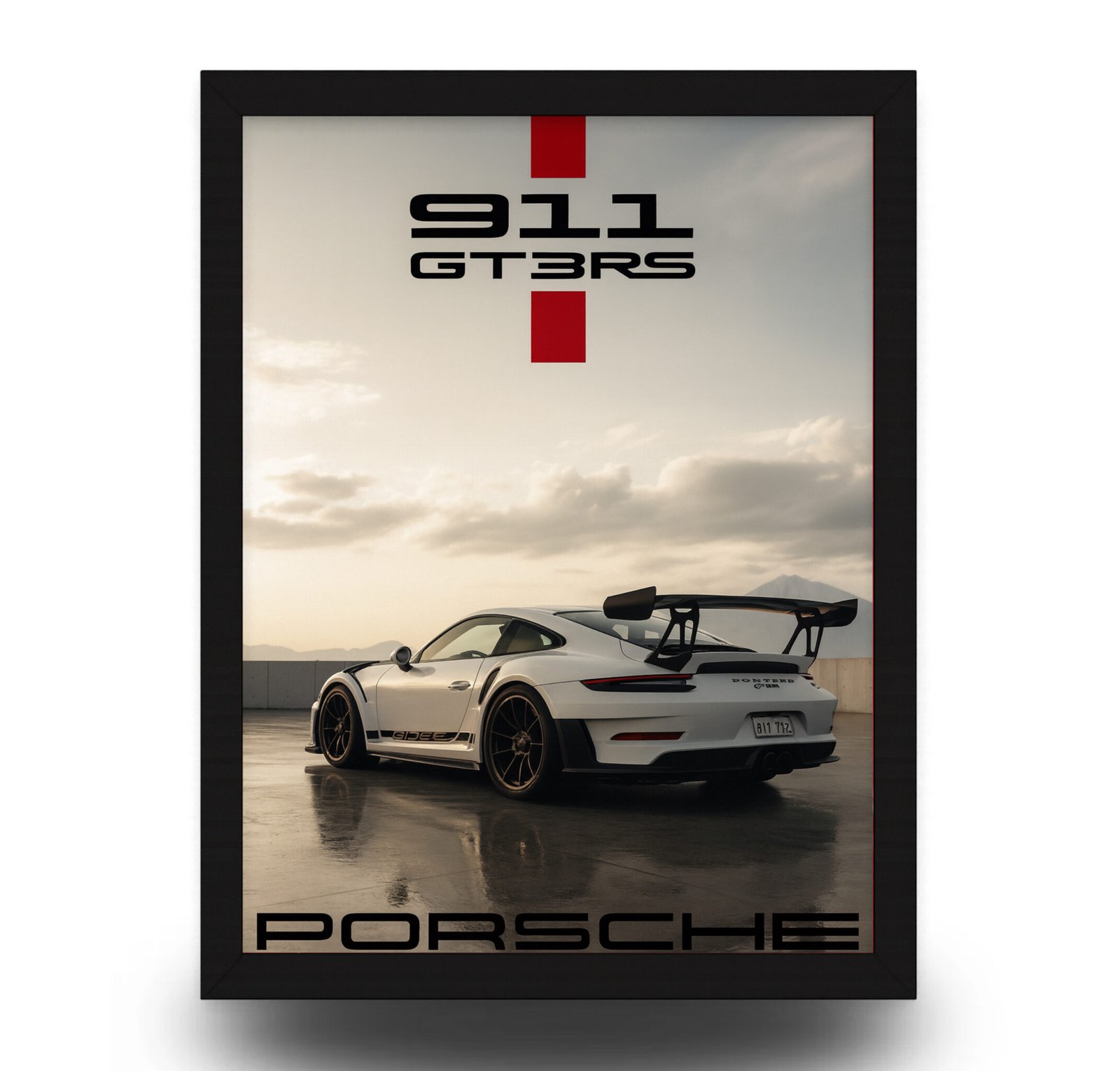 Capture the elegance and raw power of Porsche with this GT3 RS Rear View Poster Frame, perfect for luxury interiors and car enthusiasts.