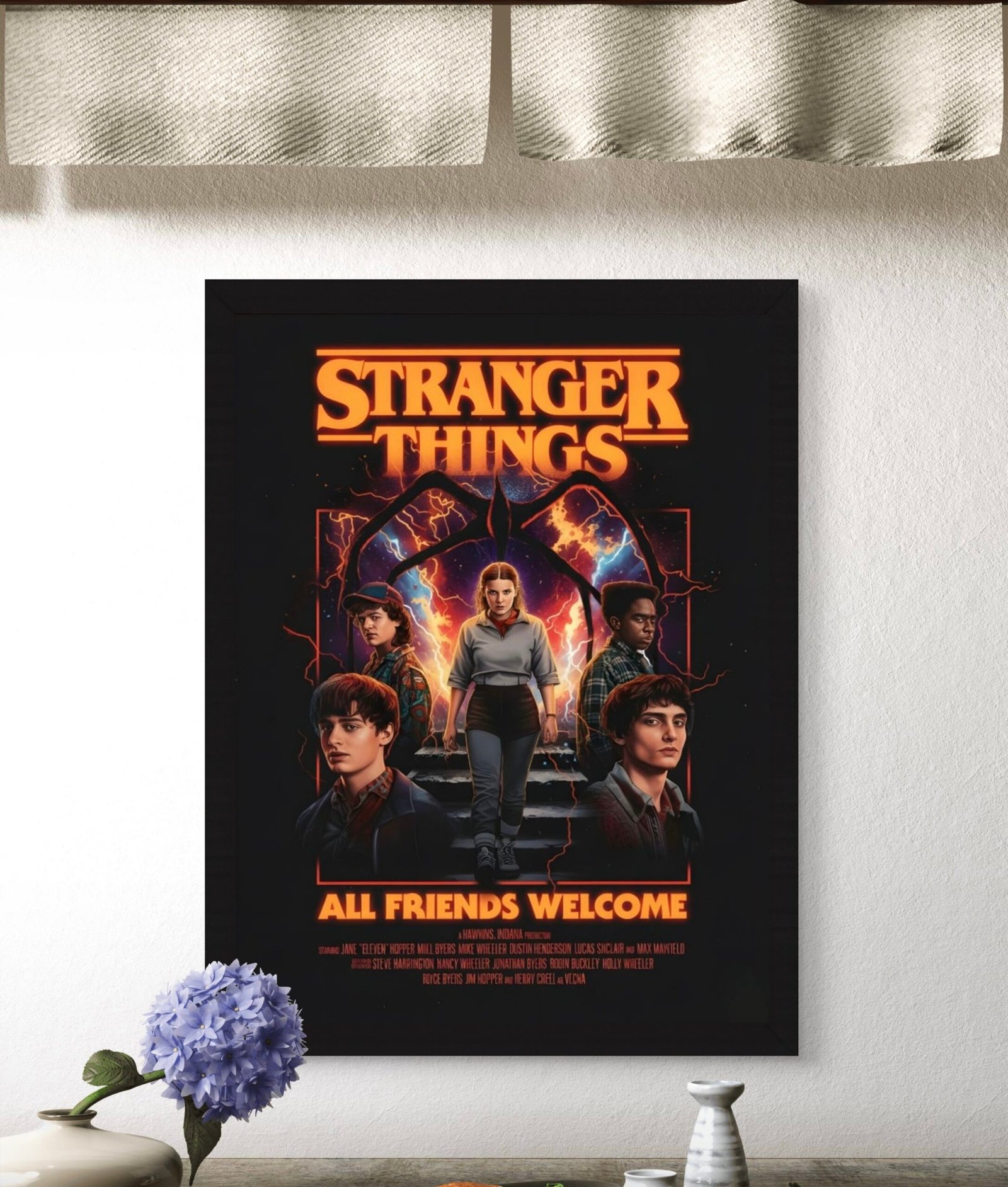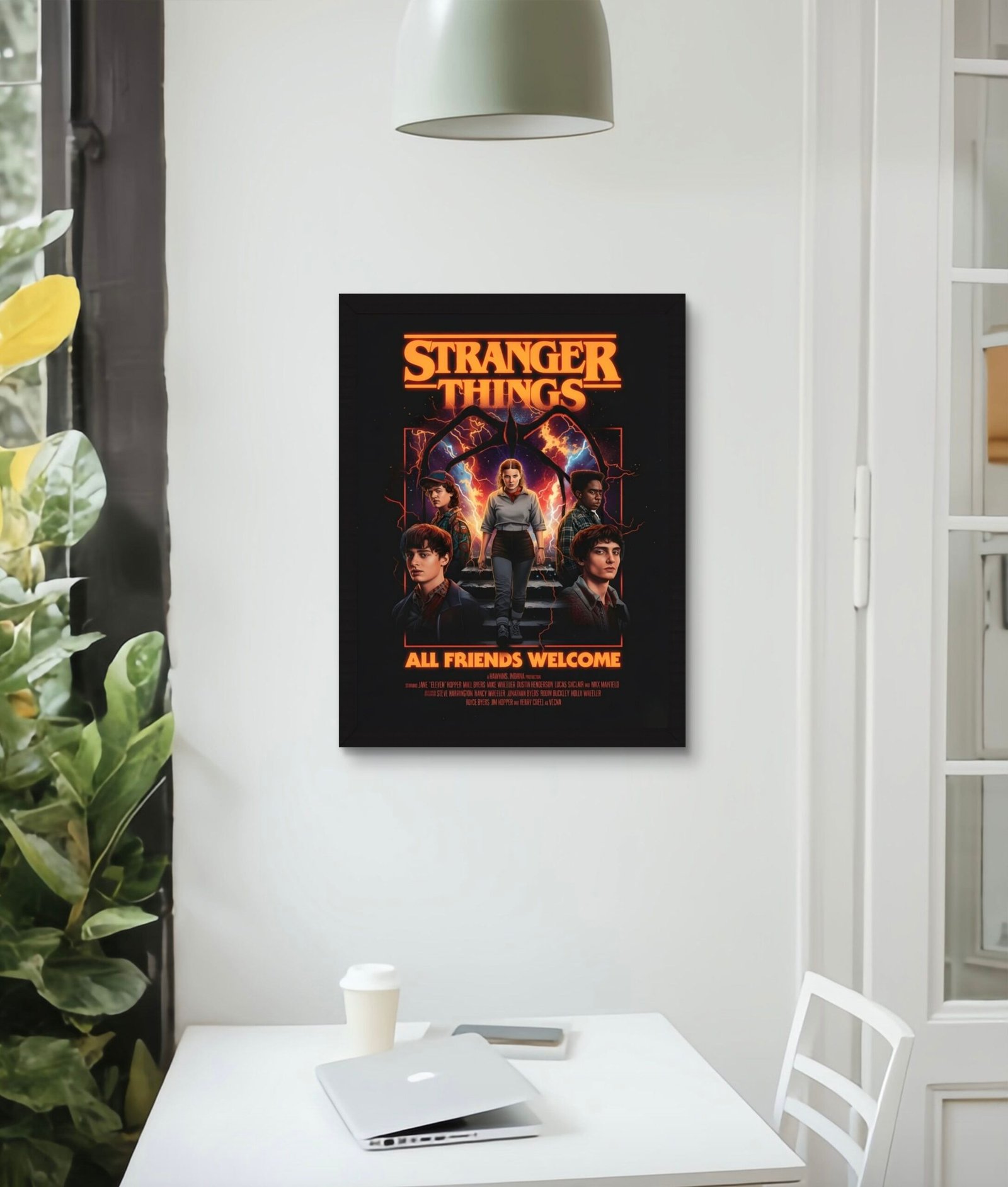 Celebrate friendship and adventure with this premium 4K framed artwork from The Frame Street, featuring all the iconic Stranger Things friends ready for Season 5. Printed in crisp HD quality and mounted in a sleek A3 frame, this piece brings nostalgia, excitement, and retro 80s vibes to your room. Perfect for fans, collectors, gaming setups, or any wall that deserves bold, cinematic Stranger Things art.