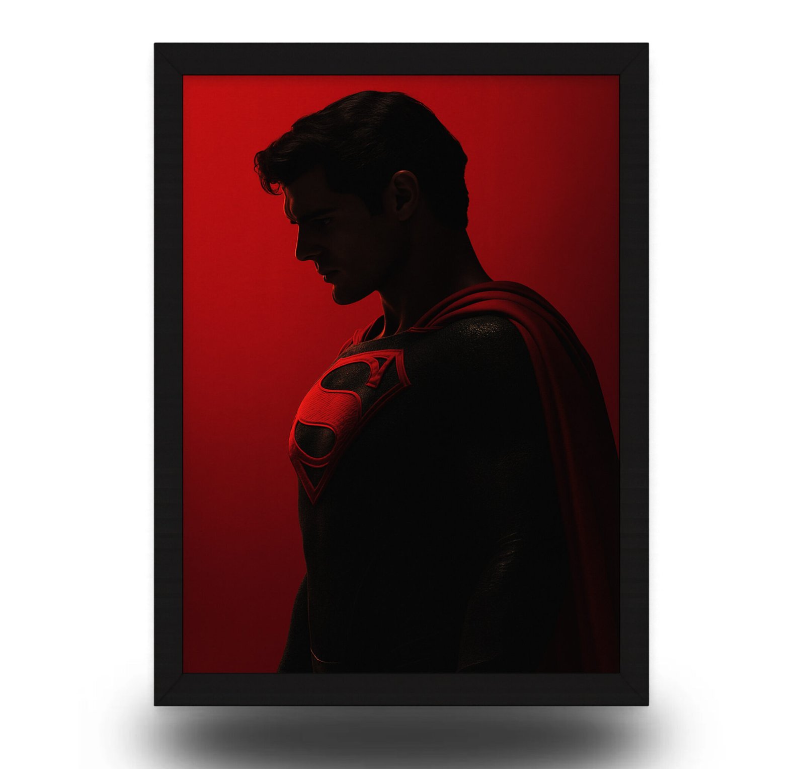 Elevate your space with this striking Superman Poster Frame, showcasing the Man of Steel in a dramatic dark red silhouette design. This premium wall art captures Superman’s timeless strength and mystery, making it a must-have for DC fans and collectors.
